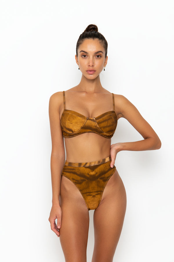 Flatter your vibe! Designed to flatter and support this set is the perfect cut to flaunt your bust & embrace you shape in all the right ways. Teamed with high waist bottoms that flatter your waist and elongate your legs....