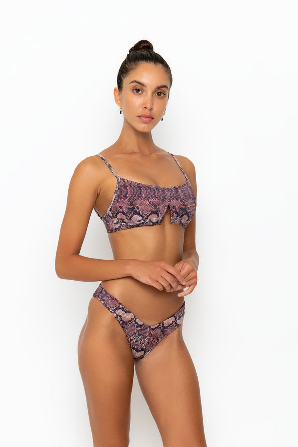 Remain Untamed! Our Ameka cut will give a new look to your standard crops. The perfect coverage and supportive nature with its little tease cut out will ensure this crop is your perfect wardrobe essential. Pull the Ameka Brazilian cut...